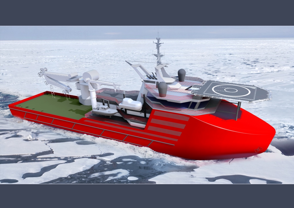 Центральное морское конструкторское бюро ОСК «Алмаз» представило новую концептуальную разработку - судно для подводно-технических работ в арктических морях, способное выполнять широкий спектр задач на глубинах до 2000 метров.